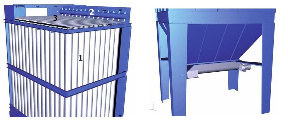 Legenda: 1 - Maniche 2 - Serbatoio pulizia 3 - Tubi soffiatori |