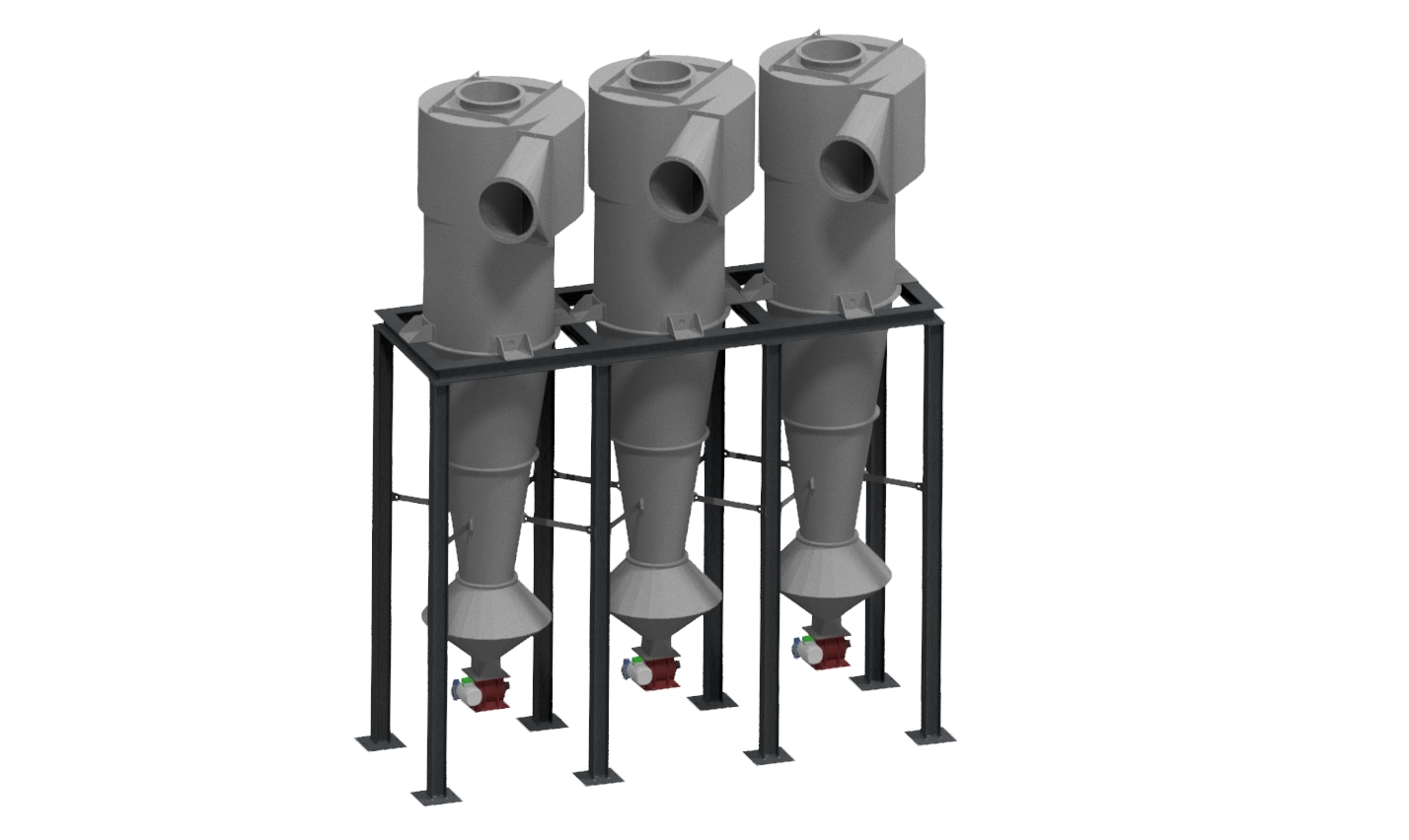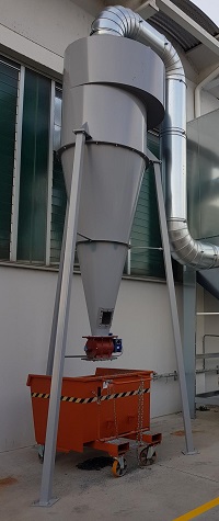 Descrizione: i cicloni decantatori permettono la purificazione dell'aria o di un gas dalle polveri sfruttando il principio della forza centrifuga. I cicloni sono applicati quando l'aria da trattare presenta una concentrazione di particelle estremamente alta o quando devono essere rimosse polveri grossolane che potrebbero poi danneggiare i dispositivi più delicati di depurazione.