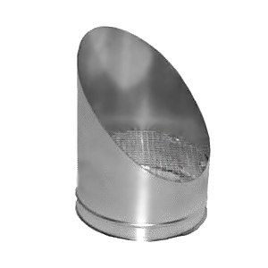 Caratteristiche tecniche: terminale parapioggia a 45° in acciaio zincato con rete anti voltatile elettrosaldata