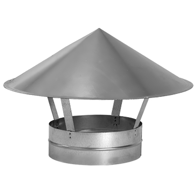 Caratteristiche tecniche: terminale in acciaio zincato a doppio cono contrapposto con rete e con vasca di raccolta e scarico acqua piovana